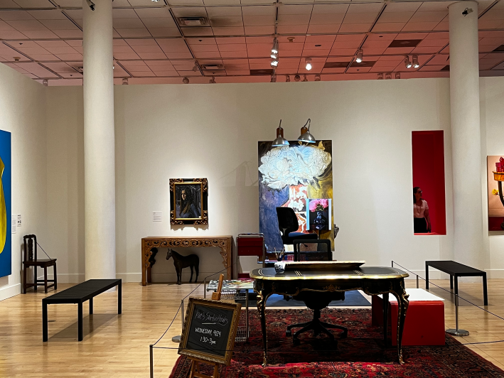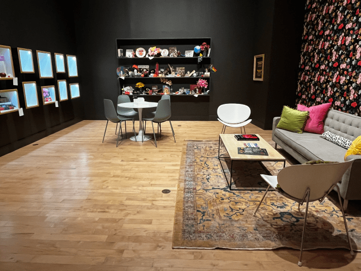 For Gordon (who has been out as a gay man since his 30s, setting him firmly within not just the Neo-Realist but also the Queer Prairie pantheon), “decoration” is not a frivolous throwaway, but rather a deeply personal matter. It takes work, passion, energy. It means something—something that takes time and attention to get to know. The Philbrook team homes in on that theme with a wall display that breaks down a still life by tucking the stories of some of its elements behind little doors, as well as with an interactive room where visitors can create their own collections of items that together signify “a life.”