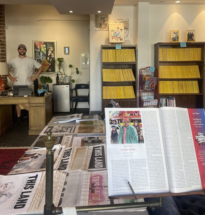 “We’ve been very clear from the beginning that this whole thing [i.e., opening a magazine shop] is a dumb idea,” Cash says. “So, we figured, what’s dumber than starting a pop-up in 2025 without social media? The benefit of word-of-mouth is that people will find us anyway. Plus, everything is better in print.” Cash made sure to note that the shop does, however, have a Hinge profile.