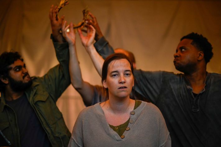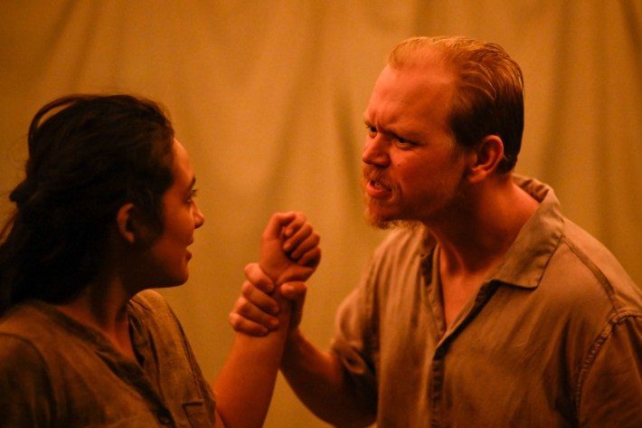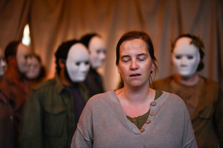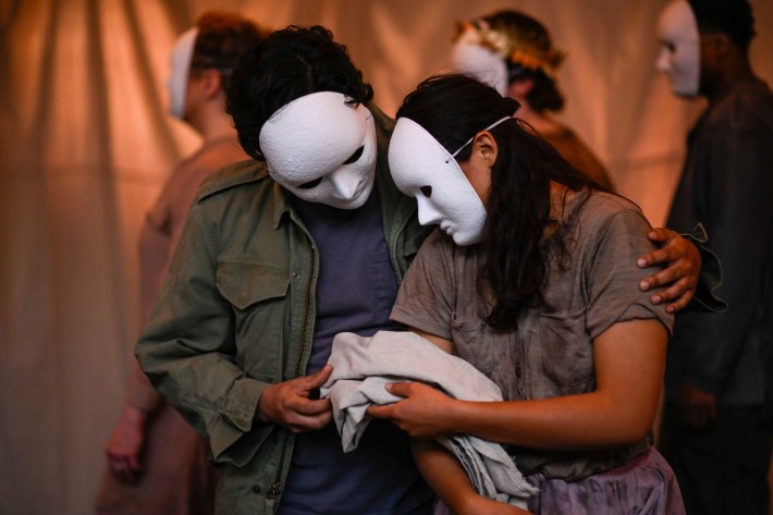 Some of Ismene’s first words here were a plea to “try again,” to somehow go back and make different choices, to save her family, which has inherited generations of trauma that now threaten to break it all over again. These words framed the production in a kind of aching repetition, suggesting that tragedy itself is a cycle that refuses to loosen its grip. Ismene spoke them early on in desperate answer to a simple question: “What would you like to do?” At the play’s close, that question follows Ismene’s plea to “try again,” faintly pointing to the possibility of choice, a small and fragile opening through which that cycle might, however imperfectly, be interrupted. But the cost to get to that choice is high and heavy.