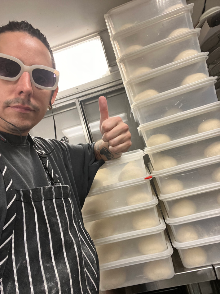 Ballard—who has invented pies featuring everything from peaches to sauerkraut—wants to expand his pizza-making potential with an actual kitchen and ovens that can handle more kinds of ingredients. “A lot of raw ingredients get kind of sautéed or kissed by the flame, so to speak,” he said, because health codes prevent him from cooking on anything in the truck other than the woodfire oven. “I would love to do, like, a mushroom confit and a nice cheese pizza. But we can't confit mushrooms in a thousand-degree oven.” He’s eyeing a Detroit-style pizza offering, too. All pizzas will continue being made to order, on hand-mixed dough.