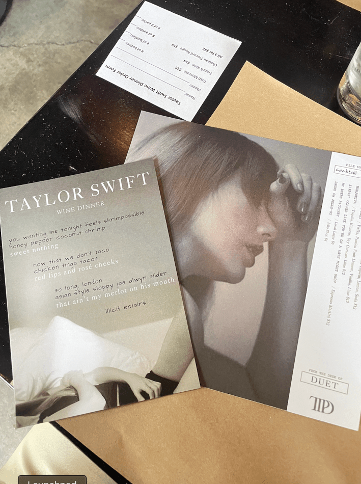 Since the April 2023 wine dinner, Duet has brought this concept back more than a dozen times. It’s gone from a one-off Wednesday night event to a four-night block, celebrating everything in Swift’s life from album drops, gaining ownership over her masters, even her recent engagement, and now her latest album. In January 2024, they added Swift-themed Sunday brunches, which they’ve brought back six times. They’ve also expanded their libations to offer nonalcoholic drinks.