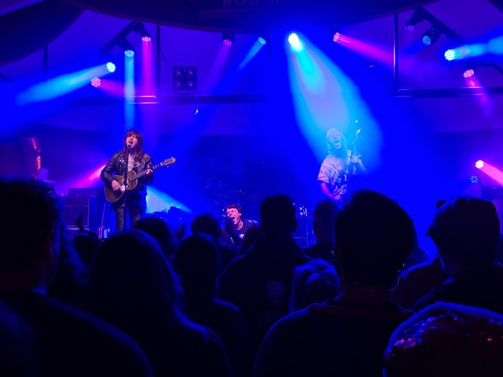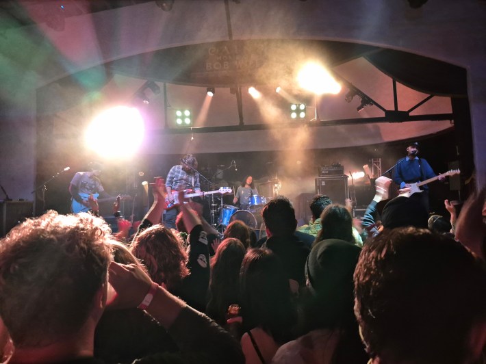 Unfortunately, the sound mixing left plenty to be desired. I took an earplug out to test that I wasn’t imagining how sludgy the lead singer’s vocals sounded and felt gratified when I saw a cool-looking guy with huge ear gauges next to me pumping his thumb in an upward motion: the universal sign for “turn up the mic, dude.”