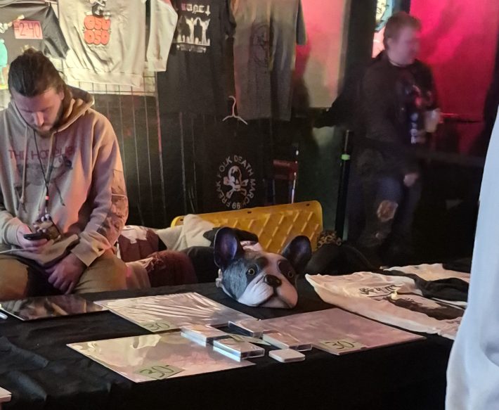At any rate, I don’t think anyone cared. The energy was lively and heads were nodding along for the entire 70-minute set, which ended with “Everything Is Alright,” the only song of the band’s I recognized. By the end of their act, I felt like the rubber dog head sitting on Oso Oso’s merch table: deflated and a little existentially weary.