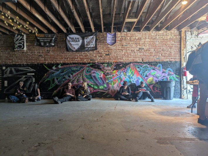 It's late summer, and the dregs of heat hold on as fall moseys in. On a particularly sunny Saturday last weekend, I joined a lineup of local and touring musicians headed for Cyberfest, an exploration of rarely heard sound put together by known Tulsa fringe music advocates Cult Love and Mass Movement Community Arts. Cars with bumper stickers like “I HONK FOR NOISE” lined the street as I walked up. As the doors opened around 3 p.m., an anxious early crowd filtered in, full of familiar faces, including Strangers in Mirrors, Zac from Anthroproach, and Tahlia, the former bassist for Estrvs, who ran up to me to deliver a GODOT-branded BIC lighter featuring the image of my favorite Japanese robot musician Hatsune Miku—which felt topical. With my new Miku lighter and my waterproof notepad (you never know), I was ready to see what Cyberfest was all about.