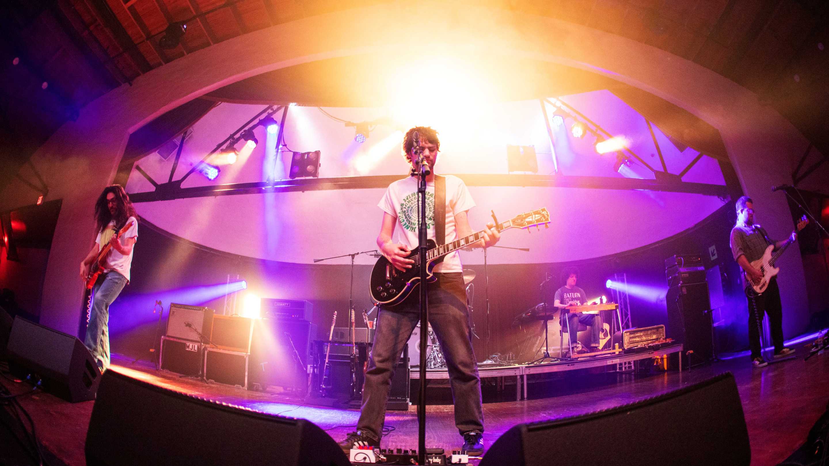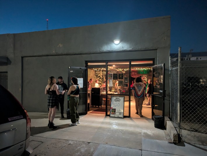 Inside are the bare necessities of a venue, and I mean that in the best way possible. It has exactly what it needs, namely an unassuming stage just large enough for a full band, just enough light to give warmth and color, a set of speakers that fill the room perfectly, and a side room for setup and merch. I walked around admiring the graffiti, stickers, exposed brick, and broken concrete. The all-ages venue feels both authentic and safe, with a “NO BOOZE, BOZO” sign displayed outside. Straight edge, man.