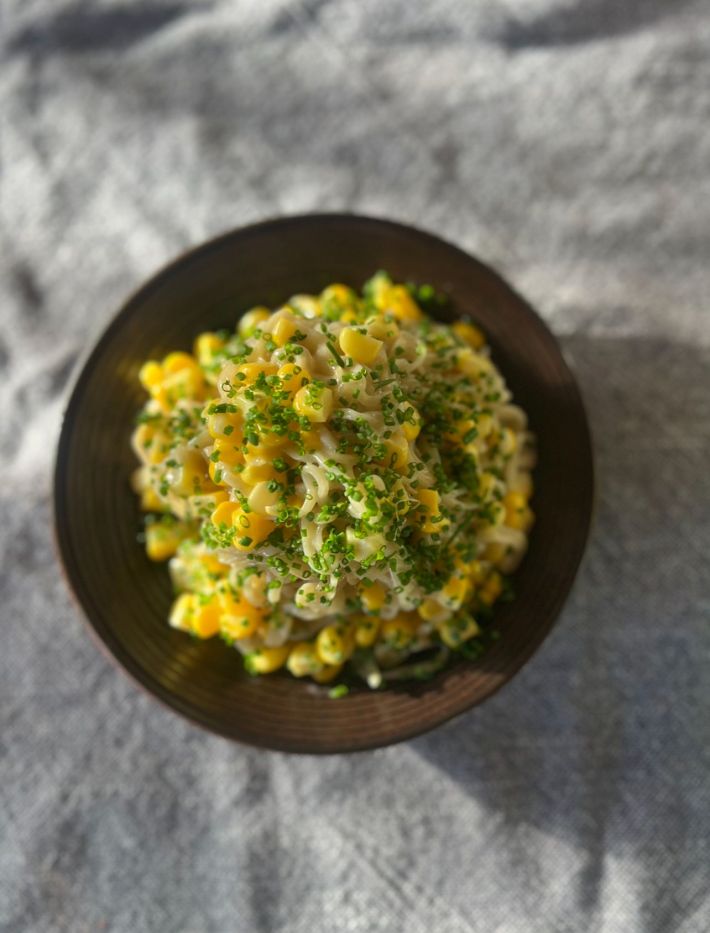 An early draft of the menu includes items like udon carbonara, buttered corn ramen (pictured), and an Okie twist on okonomiyaki, the traditional scallion pancake. “We’re calling it Okie-nomiyaki,” Feeley said, adding “we’re using smoked brisket with mustard barbecue sauce.” Japanese highballs and cocktails are designed to be the focus of the bar menu and bar proper.