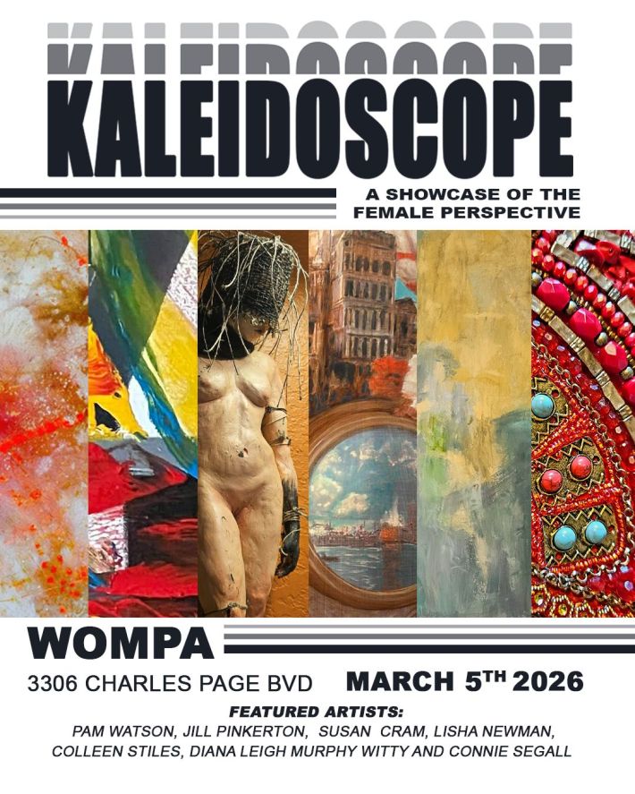 Held in the kaleidoscopic creative space at WOMPA, “Kaleidoscope” celebrates the creative voices of seven women artists who work across painting, mosaic, and clay forms. The show highlights diverse approaches to material, process, and expression—ranging from bold painterly gestures to intricate mosaic compositions and sculptural ceramic forms, reflecting strength, storytelling, and innovation through multiple mediums.