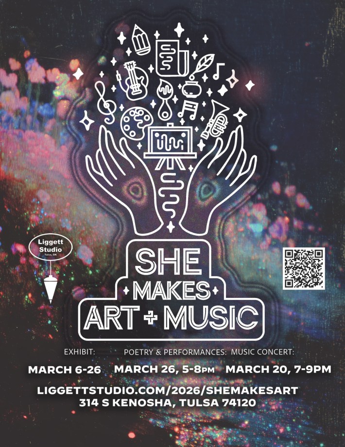 Spring springs up from the earth this month as Tulsa's artists highlight color, craft, and human connection. Several exhibit openings focus on women's creativity; other events offer immersion in sound, architecture, and hands-on work. Put these shows on your calendar, and we'll see you out there. —Alicia Chesser