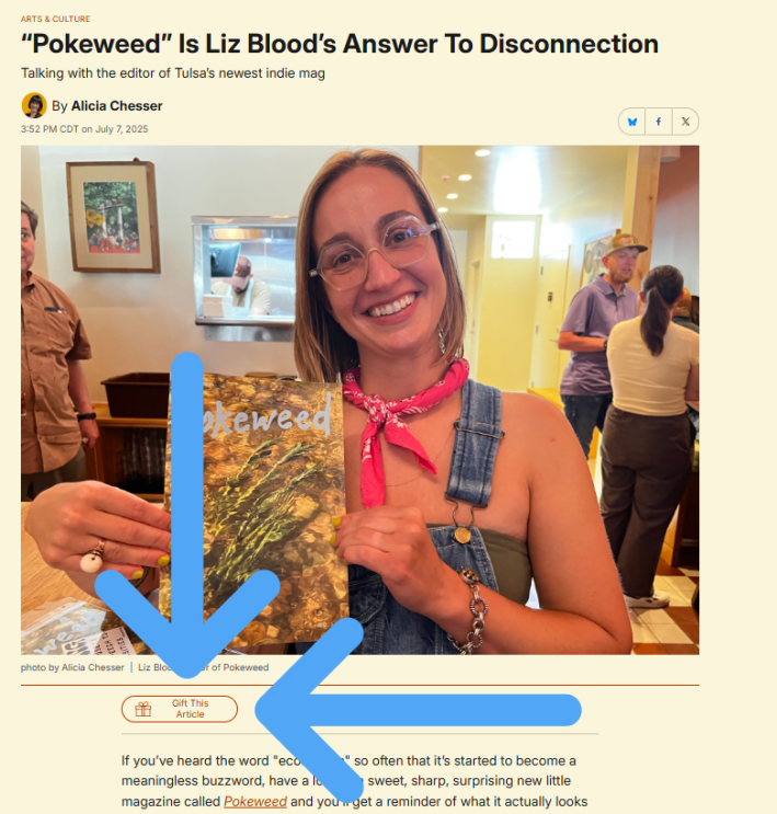 - Share them with your friends, neighbors and family using the Gift Article functionality. Referrals are going to be crucial for us when it comes to building this business, so whenever you read a good story in The Pickup (which we hope will be pretty often) please do us a solid and gift it to a friend via text or your preferred social media network. If you're logged in, here's where to find the Gift Article Link, which will allow your friends to read the story without hitting our paywall: