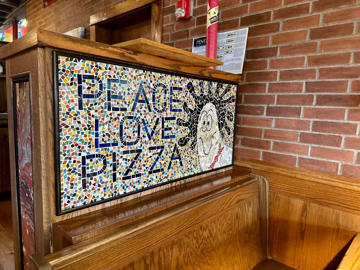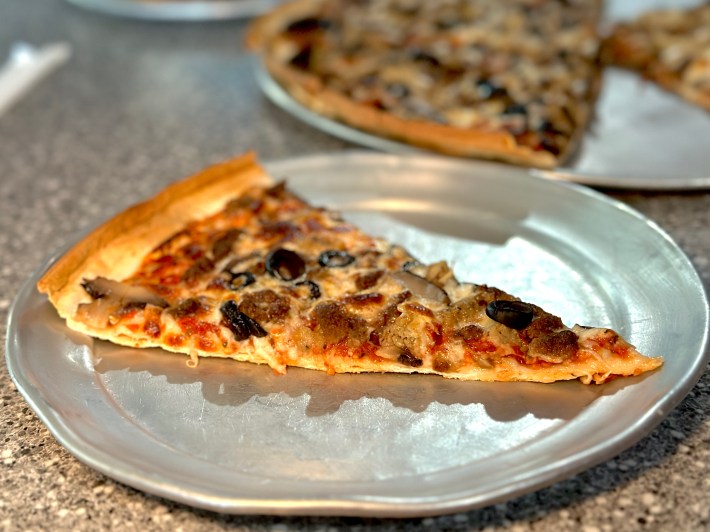 I ordered up a hefty medium Ken’s Supreme Pizza ($16.49) to put the crust through its paces. Cracker-thin and golden, strong enough to support the generous loadout of pepperoni, sausage, green peppers, mushrooms, and red onion, it was the perfect specimen. Ken’s is, like Hideaway, a toppings-on-top operation, which means everything gets a little roasty-toasty instead of being steamed into submission under the cheese. At the end of this tour, I can say with confidence that this setup is my preference. The veggies are caramelized, and the fat from the meat is rendered.