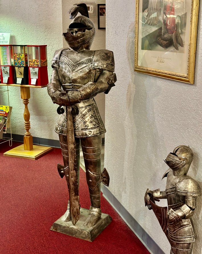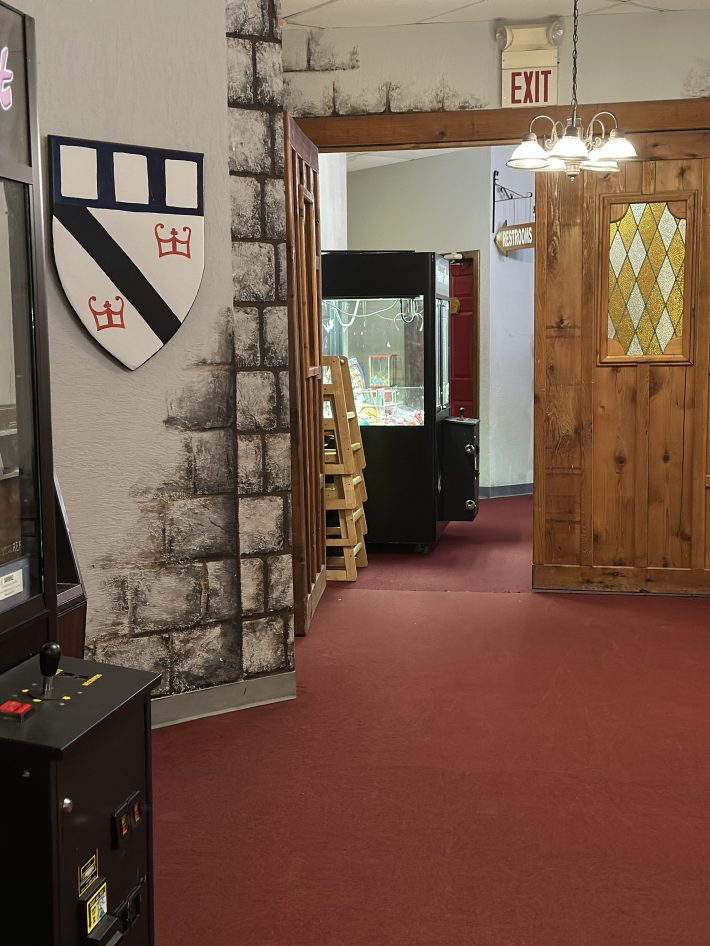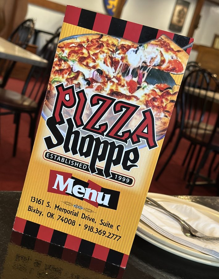 If thou seeketh thy crunch, point thy steed south on Riverside and keep riding ‘til Bixby. There, in a nondescript strip mall, lies a door of dark-stained wood—a rare architectural signal that good pizza awaits. Inside, The Pizza Shoppe leans full Midwest medieval chic with suits of armor, rampant lion shields, bathrooms marked “Damsels” and “Knights,” and a back room replete with arcade games that has surely hosted many a birthday. I asked about the King Arthur’s Court decor. No one knew why. I didn’t press. Some mysteries are better left unsolved. Besides, the pizza is the real queen here.