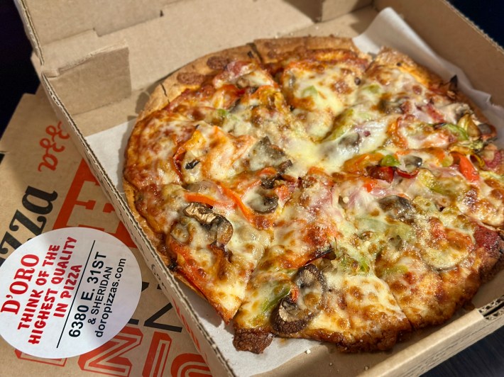 Located in a blink-and-you’ll-miss-it strip mall near 31st & Sheridan, D’Oro is a carry-out-only spot that channels its savings on overhead into a seriously stacked ingredient list. This place is a sleeper agent for pizza nerds, offering fresh mozzarella, portobello mushrooms, sun-dried tomatoes, smoked gouda … you get the idea.