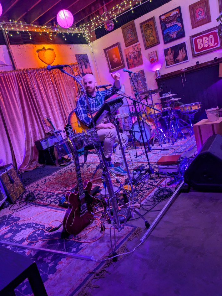 First I stopped by Thelma’s Peach to see what was happening with the vinyl release show for What Fun, the new album from Winston Churchbus (Nicholas Foster). To my surprise, they started their show on time. Even a little early! Live music rarely starts on time.