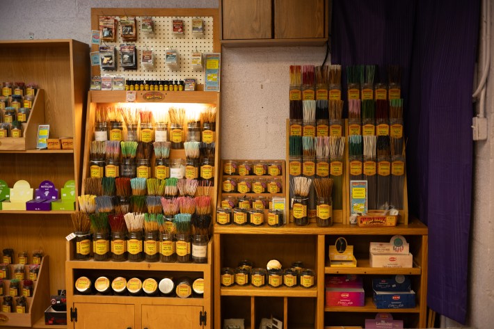 The next day at 4:30 I meet Amber, manager/intuitive at Spiritual Rose. I also meet Randy, who opened this store a decade ago with his wife Teresa. Randy is not what you might expect in a store of crystals and witchcraft books. The pack of smokes in his T-shirt pocket is clearly outlined underneath a Spiritual Rose work tee. With his white mustache and Sam Elliott swagger, Randy wouldn't look out of place drivin’ a semi, pickin’ a Waylon tune, or runnin’ a muffler shop. Amber has a similar downhome vibe, the easy charm of your favorite diner waitress. I am immediately comfortable with them.