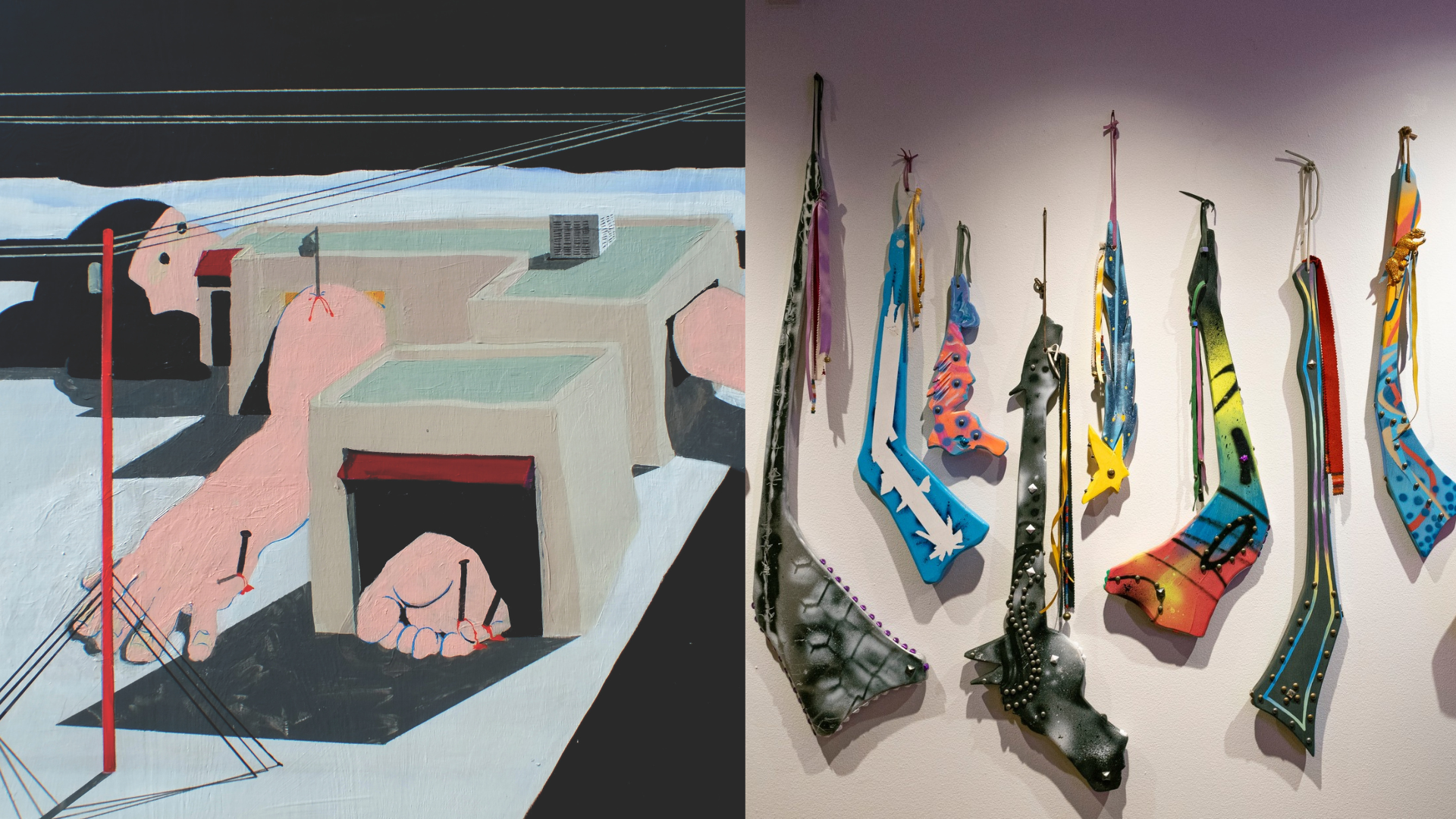 Ever feel so disconnected from your body that it might as well be a hunk of meat? Albuquerque-based artist Beedallo decided to embrace that image, and their show “Meat Engine” arrives to challenge your perceptions with paintings where bodies are squeezed through buildings, copied and pasted and blown up and shrunk down, turned into just another material in a material world. Beedallo’s work is dark and absurdly funny; one of their paintings became the album art for Future Islands’ People Who Aren’t There Anymore. They’ll give an artist talk on September 27, the day the show closes.