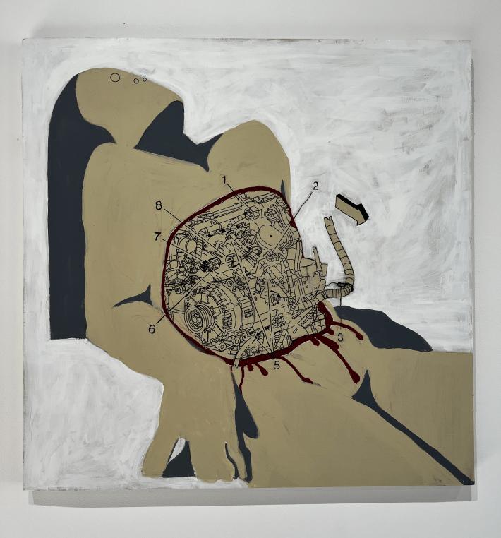 Body horror, rampant dehumanization, dysphoria, fin-tech in the water supply, cartoonishly and dangerously distorted reality—you know, just things I’m thinking about, given that it’s a day in 2025 that ends in “Y.” Meat Engine, a small but mighty show at Positive Space, gave me a welcome place to process complicated feelings about how it feels to be a human right now.