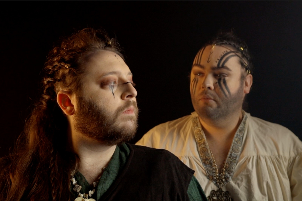 That’s what Pembroke Players aims to do as a new community theatre company in Tulsa: bring us fresh takes on classic works that we think we know—or maybe have never gotten to know at all, given their apparent remoteness from 21st-century life (or too many boring experiences of them in school). Brilliantly curated music and a creative use of space are fundamental to how Pembroke Players does this, but they’ve added another challenge to any “musty old relic” views of works like these. Who’s Hamlet? offered the audience the chance to cast the play’s four main parts themselves from a roster of male- and female-presenting actors of diverse ages, so that on any given night the dynamic onstage might be radically different from the conventional. For the six-night run of Macbeth, set in the 9th-century Scotland the play’s characters really lived in, the roles of Lord and Lady Macbeth were alternately performed by one male-presenting pair of actors (Sean Rooney and Cody McCoy, the cast I saw) and one female-presenting pair (Meagan Mulgrew and Sagely Long), and many other roles were gender-swapped as well.