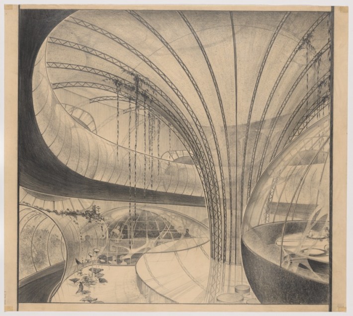 The developing philosophy of the school reflected Goff’s philosophy of architecture. It was a program based on freedom of self-expression with a pedagogical premise that all individuals had a potential for creativity. The goal of the school was to create a nurturing environment that might help students discover their own potential. Goff wrote to a prospective applicant, “in developing our student’s creative ability, we try to give them the necessary means to express themselves (technically)... and, to help them find their own aesthetic direction.” Goff believed that most schools of architecture—though they had discarded the historicism of Beaux-Arts education—were engaged in a “new eclecticism” that allowed them to indiscriminately appropriate ideas from contemporary masters like Mies van der Rohe, Le Corbusier and Frank Lloyd Wright. It became, in many schools, “...the fashion to clan together into one of these three camps, each feeling the other is insane or unclean,” Goff wrote.