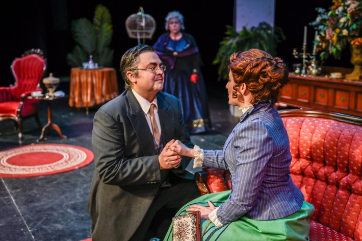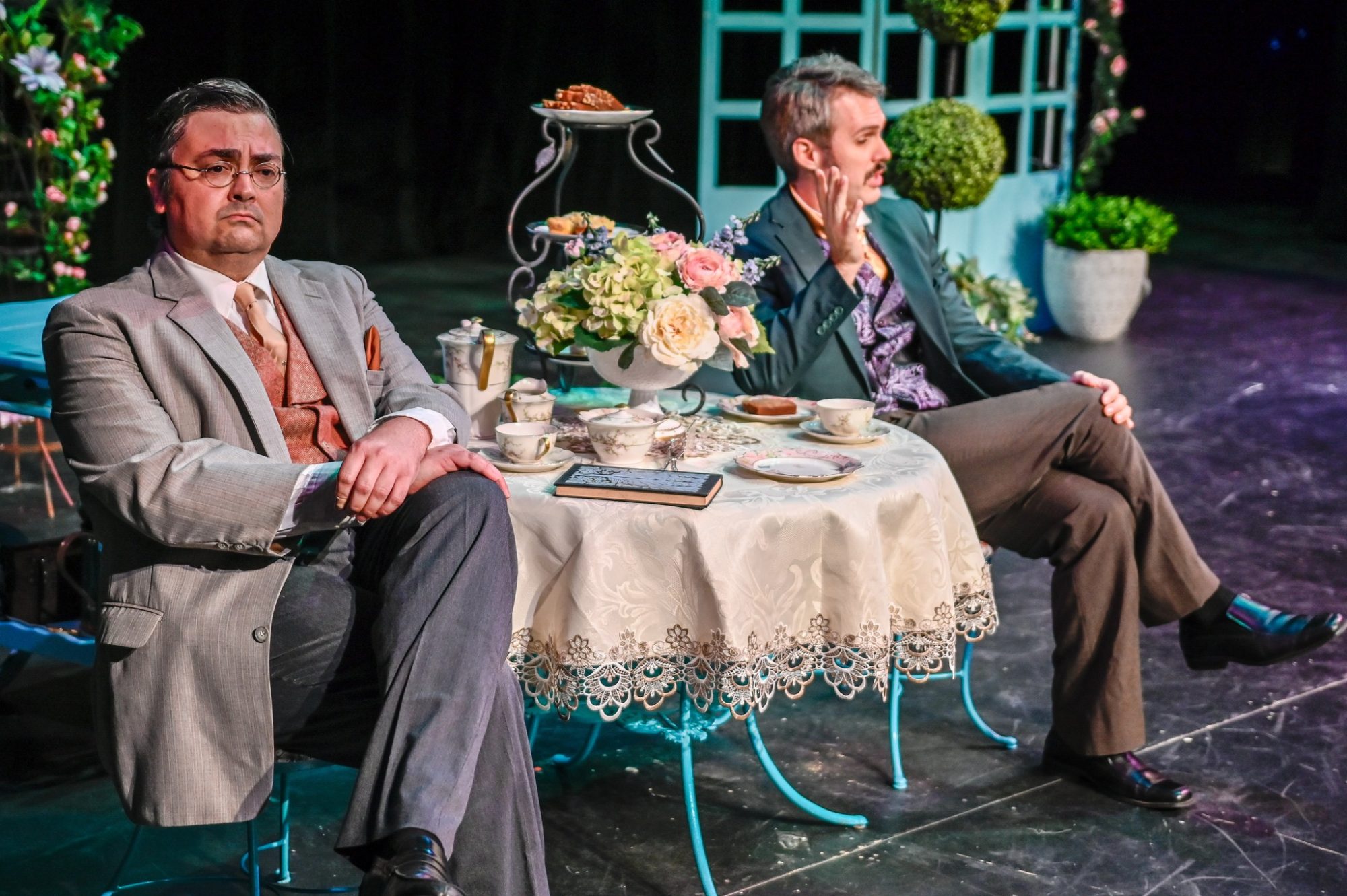 Forgoing platforms, backdrops, and levels in lieu of a set consisting of just furniture can be a risky move in the Liddy, which can feel empty if not adorned appropriately. Jason Sirois, who served as both director and set designer, did a remarkable job curating a collection of complimentary furniture, rugs, partitions and props that created a believable, aesthetically pleasing backdrop with height and depth. The play takes us to two additional locations—a garden and a second drawing room filled with plants—arranged with equal intention and precision. I wish I had this level of interior decorating knowledge available at my own house.