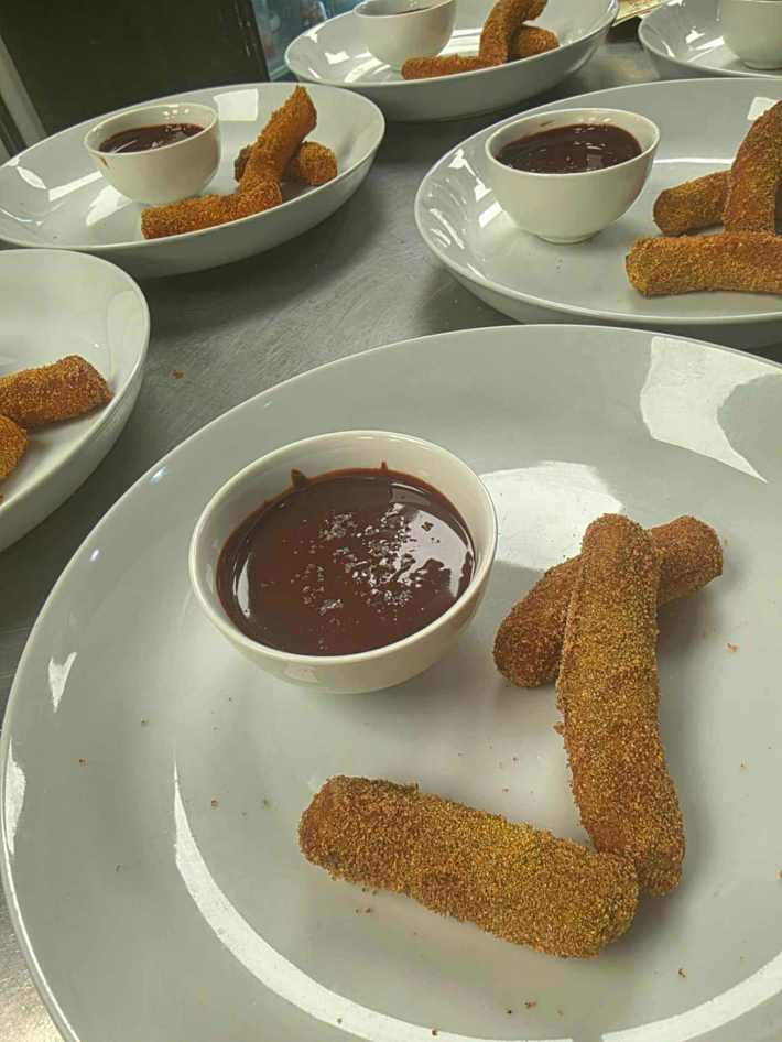 Bein and Simcoe ended the night with a laugh and a bang: gold churros with Spanish chocolate, followed by a Frangelico shot that pierced the pitch black depth of the chocolate and made my eyes go wider than Rick James after his first line of the evening. “We couldn’t talk about a future ‘legs and eggs’ dinner and not leave y’all with gold dust on your fingers,” Simcoe said while serving their golden take on the classic dessert, referencing an earlier dinner concept riffing on a strip club breakfast buffet where the “legs and eggs” would be crab and caviar.