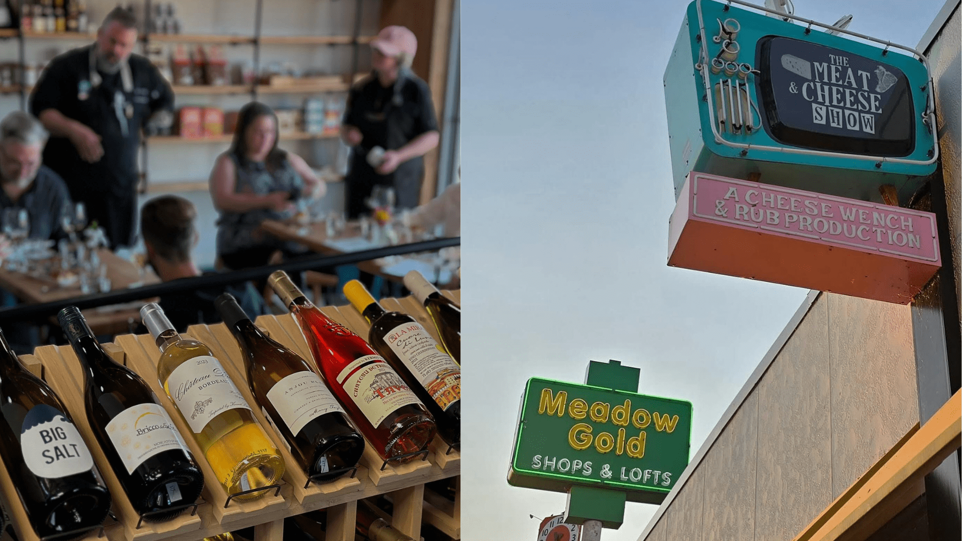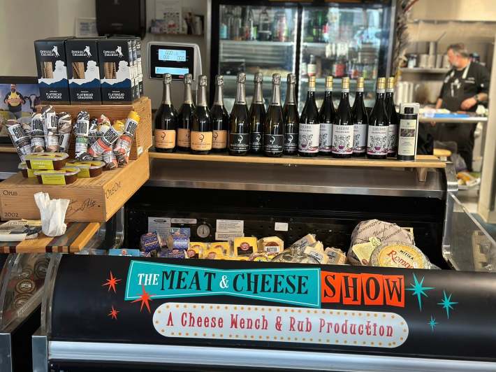 With Simcoe’s encyclopedic cheese knowledge and Bein’s praetorian command of proteins, the concept came together quickly, and in 2021 The Meat & Cheese Show was born. It started as just a market, but soon evolved into a full-fledged food operation, complete with catering, a vintage Airstream cocktail bar, and regular dinner gatherings at the shop where Bein and Simcoe serve multiple themed courses with wine pairings and stories as rich as what’s on the table.