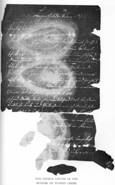 The party traveled somewhat slowly so that the horses had time to graze en route, and on November 24 they reached Turkey Creek, Indian Territory, in the Cheyenne and Arapaho Reservation, about 50 miles from the present location of El Reno, Oklahoma. This creek was at this time known for the great number of the wild fowl along its banks and three members of the group set out to secure fresh meat. Kiplnizer took with him a Winchester rifle, while Simpson and Wannamaker both took double-barreled shotguns. Soon after leaving camp, Kiplnizer left the others to hunt on the opposite side of the creek. Hearing the shots of the others, he thought that they were being more successful than he and crossed over again. This time he met Simpson, who informed him that he had just killed the “old man.” Kiplnizer rather thought that he was joking as this was the type of humor affected by the older herder and the two went into camp. Immediately, Simpson acted surprised and asked where the old man was and then advanced the idea that he was probably lost and would return after a while.