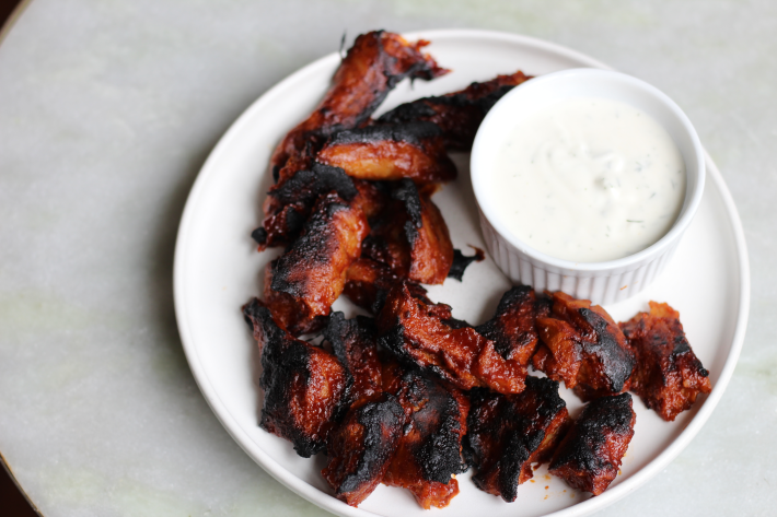 This preference doesn’t limit Pare Provisions’ range, which any given week could include vegan reimaginings of popular soups and dairy- and carnivore-friendly swaps for the vegan-curious: crispy and chewy roasted homemade seitan chicken wings with chipotle barbecue and ranch or tofu burnt ends over mac and cashew cheese. Her recipes are welcoming to vegans, but also everyone else. Many of her repeat clients aren’t vegan.