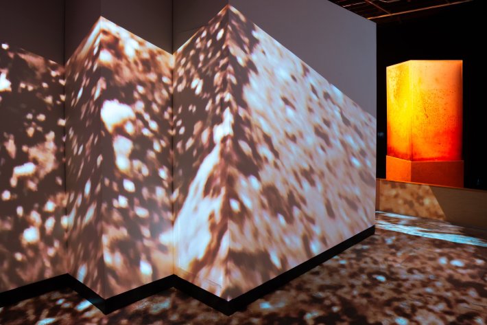 Connected not only through medium but through concept, Earth Elegy and The Hidden Gospels of Dust are charged with the profundity of earth, the specificity and ambiguity of place, and a connection to a divine or cosmic life force. Dust can be generated from erosion, the weathering and breaking down of earth, but Chaplin also creates new landscapes here. The buildup of dust within her sculptures points to what can be created with the right energetic force.