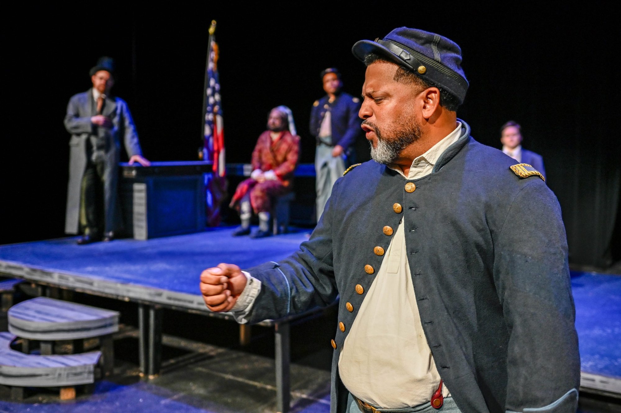 In the past year or so, those experiences have taken the form of pop-up “Spicy Shakespeare” readings at local bookstores, a series of one-night-only scenes called “War of Words,” educational offerings, and a production of Twelfth Night in the vaulted hall of the German-American Society. Before Othello, the company hosted a workshop by Carlos Moreno about the Reconstruction Era in which the play would be set.