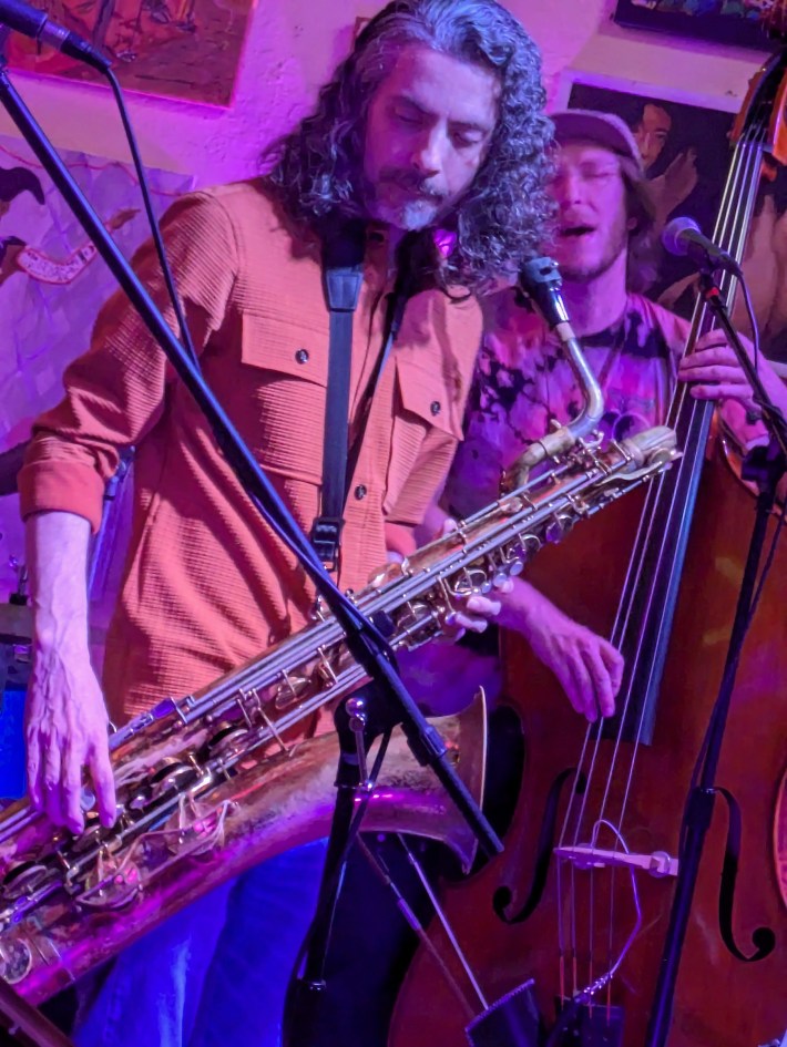 I headed back to Thelma’s just in time for GCR to get warmed up. Before I walked around to the patio to come inside, I went to the front door (the band entrance) and leaned the back of my head against the wall to feel the vibration. That’s all music is: vibration. It’s a different way to listen now and then, taking some time to let your whole body feel it, not just your ears.