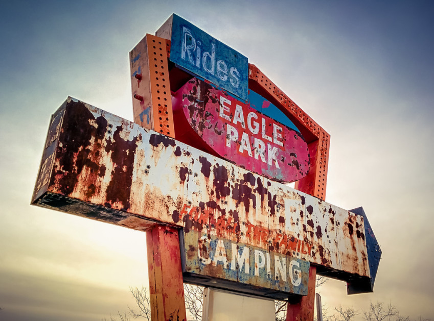 This isn’t to say Oklahoma is some kind of kenophobic collective, but to attest that landscapes hold a power that influences people in subtle and unsubtle ways, that the way the eye travels across a terrain has some relationship to how the people who live on it think and feel. In Oklahoma’s case, this helps contextualize our rich history of being complete nutcases prone to manic bursts of energy followed by long, wistful “well, shoot” intervals of time in which we wax poetic about our grand designs not quite panning out. The latter, though its origins are in the former, are often mistaken for our entire deal. Folksy. Humble. Nostalgic. Banjos. Harmonicas.