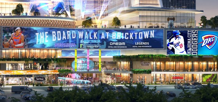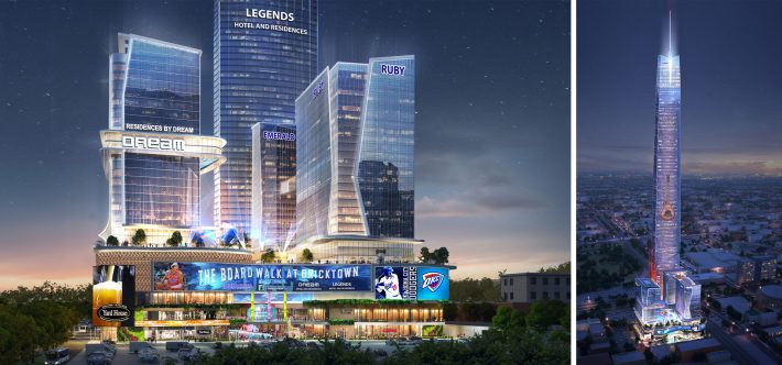 However, if all goes according to the plan, Legends Tower will have a glass facade and be accompanied by three equally new but altitudinally lesser towers. A spire will inch the Big Okla-huna over the finish line to achieve “tallest” status. There will be a hotel, offices, and an allotment of affordable housing. That last bit is crucial, and something to keep in mind. Rapidly-growing OKC is staring down a housing crisis with climbing homelessness and eviction rates. The city needs some 77,000 more rental units for low-income residents to compensate. There will also be a “lagoon.”