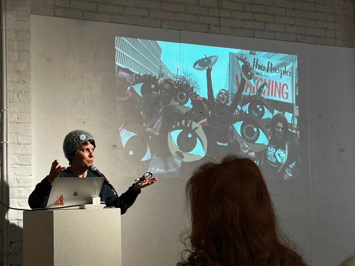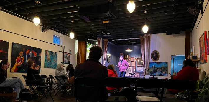 People are turning out for these moments, as momentum builds in response to escalating political violence. This past weekend, Liggett Studio was packed for a talk by Tulsa-born, Brooklyn-based art activist Julie Peppito, and an open mic organized at Belafonte in honor of Renee Good, killed by ICE in Minneapolis on January 7, drew an age-diverse crowd full of LGBTQ+, Black, Hispanic, and Indigenous creatives. There’s clearly a hunger here for group expressions of frustration and protest, for voices that can articulate collective anger and grief outside of online echo chambers.