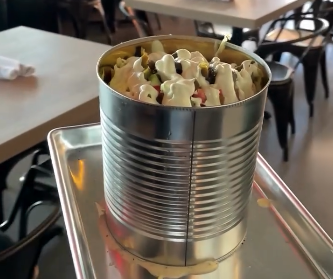 From where I sat, I could see the can glistening on the server’s tray as they approached, and prepared myself for the money shot: when they tipped that bad boy over and unleashed a sloppy, melty avalanche of flavor straight onto my plate like molten gold . This dish doesn’t 'serve' people—it claims them.