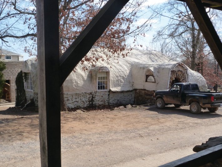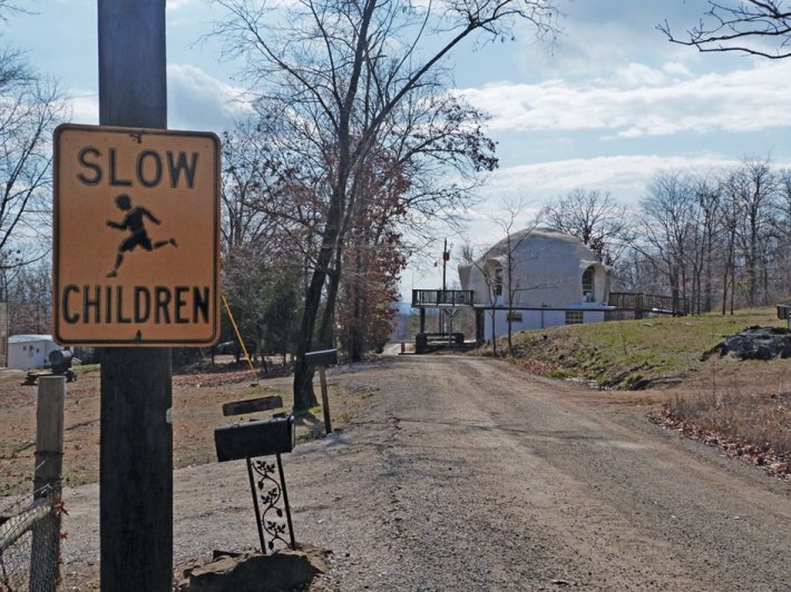Serenity permeates the village. The day is bright and sunny, and the view of the Ozarks is breathtaking. For all the violence and racism assigned by outsiders, the town feels more like a spiritual oasis than a terrorist compound. There are no armed guards waiting. A small terrier roams free while children play in the road. A quirky collection of huts, trailers and cottages spread across the property intermingled with several hulking, alien-like stone structures whose bubbled, dome roofs betray the off-kilter eccentricity of their builders and inhabitants.