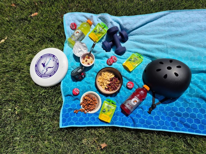 In The Picnic Basket: Protein-rich on-the-go snacks like yogurt, cheese, nuts, dried fruits, and peanut butter crackers, plus plenty of water and electrolyte-rich bevvies. Feel free to start a heated debate between Team Gatorade and Team Powerade.